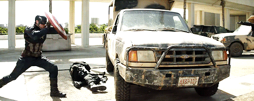 soldier: shit captain america is here and hes really strong, better not use my gun and just slam my dick and balls into the side of this truck